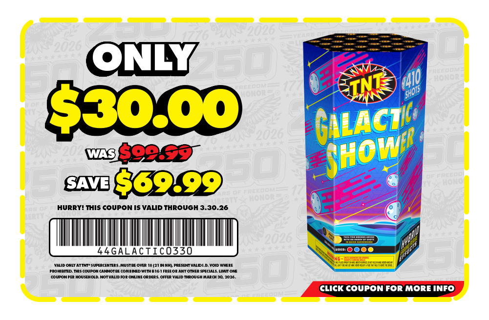 Supercenter Deal of the Week: Purchase 'Galactic Shower' for only $30 each - Save up to $69.99. Valid only at TNT Supercenters. Limit two per purchase, one coupon per household. Limited quantities available. Other restrictions apply, see coupon for details.